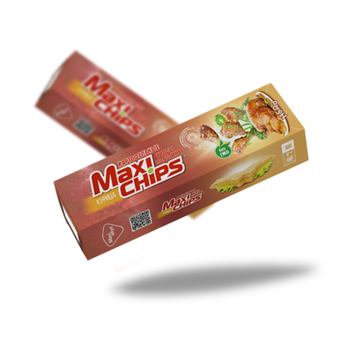 "Макси Чипсы" пластины- это картофельные чипсы, в виде тонких длинных прямоугольных пластин с 10-ю вкусами: бекон, натуральные, сыр и лук, паприка, курица, сметана и лук , красная икра, черная икра, грибы и сметана.